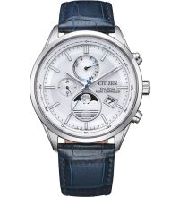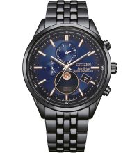 solar movement (quartz) that, as is usual for Citizen watches, guarantees precise timekeeping and provides the following functions: Hour, Minute, Second, Date, Chronograph, Moon phase, Radiocontrolled, 24-hours, Solar, Perpetual calendar.