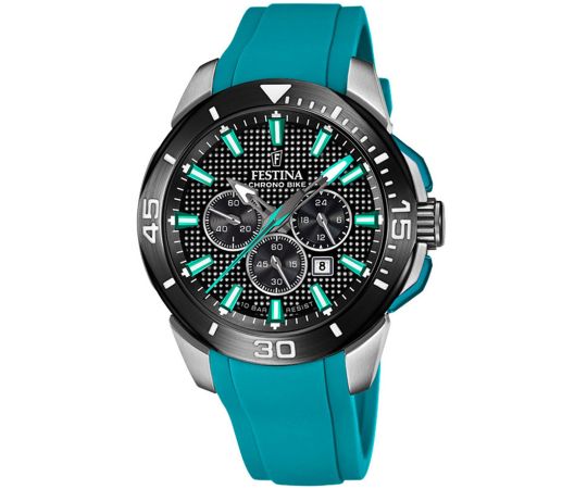 quartz movement (with battery) that, as is usual for Festina watches, guarantees precise timekeeping and provides the following functions: Hour, Minute, Second, Date, 24-hours, Chronograph.