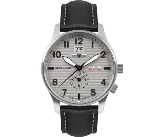 quartz movement (with battery) that, as is usual for Iron Annie watches, guarantees precise timekeeping and provides the following functions: Hour, Minute, Second, Date, 2 timezones.