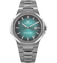 The Round case is 40 mm wide and 9 mm height and, depending on individual taste, will adorn almost any wrist. The bezel, which is Fixed, stands out discreetly from the case. The case back of the watch is a Stainless steel bottom, screwed, which sets the final point for a coherent design.