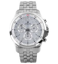 The Round case is 48 mm wide and 13 mm height and, depending on individual taste, will adorn almost any wrist. The bezel, which is Fixed, stands out discreetly from the case, as does the Screwed crown. The case back of the watch is a Stainless steel bottom, screwed, which sets the final point for a coherent design.