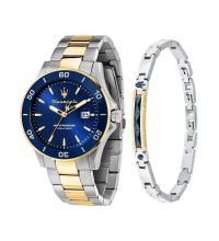 The high-quality Stainless steel bracelet - colour: Silver, Gold - with Folding clasp will give you additional pleasure with your new Maserati watch. The Stainless steel bracelet offers a high level of wearing comfort and can be worn up to a maximum wrist circumference of 210 mm.