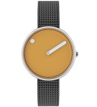 Picto® challenges the idea of a classic watch with two hands and a dial with numbers. Here, the hour is indicated by a dot on the rotating dial, while the minutes are indicated by a conventional hand. |  |