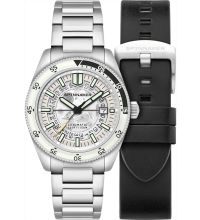 The Round case is 43 mm wide and 12 mm height and, depending on individual taste, will adorn almost any wrist. The bezel, which is Turnable, bidirectional, stands out discreetly from the case, as does the Screwed crown. The case back of the watch is a Stainless steel bottom, screwed, which sets the final point for a coherent design.