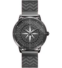 The Round case is 42 mm wide and 11 mm height and, depending on individual taste, will adorn almost any wrist. The bezel, which is Fixed, stands out discreetly from the case. The case back of the watch is a Stainless steel bottom, screwed, which sets the final point for a coherent design.