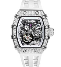 The Cushion case is 44 mm wide and 16 mm height and, depending on individual taste, will adorn almost any wrist. The bezel, which is Fixed, stands out discreetly from the case. The case back of the watch is a Glas bottom, screwed, which sets the final point for a coherent design.