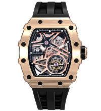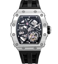 The Cushion case is 44 mm wide and 16 mm height and, depending on individual taste, will adorn almost any wrist. The bezel, which is Fixed, stands out discreetly from the case. The case back of the watch is a Glas bottom, screwed, which sets the final point for a coherent design.