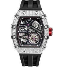 The Cushion case is 44 mm wide and 16 mm height and, depending on individual taste, will adorn almost any wrist. The bezel, which is Fixed, stands out discreetly from the case. The case back of the watch is a Glas bottom, screwed, which sets the final point for a coherent design.
