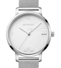 The Round case is 38 mm wide and 8 mm height and, depending on individual taste, will adorn almost any wrist. The bezel, which is Fixed, stands out discreetly from the case. The case back of the watch is a Stainless steel bottom, screwed, which sets the final point for a coherent design.