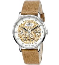 The Round case is 36 mm wide and 11 mm height and, depending on individual taste, will adorn almost any wrist. The bezel, which is Fixed, stands out discreetly from the case. The case back of the watch is a Glas bottom, pressed, which sets the final point for a coherent design.