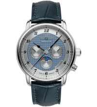 quartz movement (with battery) that, as is usual for Zeppelin watches, guarantees precise timekeeping and provides the following functions: Hour, Minute, Second, Date, Day, Moon phase.
