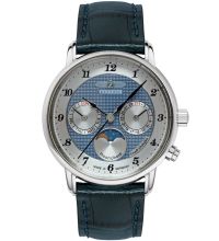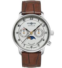 quartz movement (with battery) that, as is usual for Zeppelin watches, guarantees precise timekeeping and provides the following functions: Hour, Minute, Second, Date, Day, Moon phase.